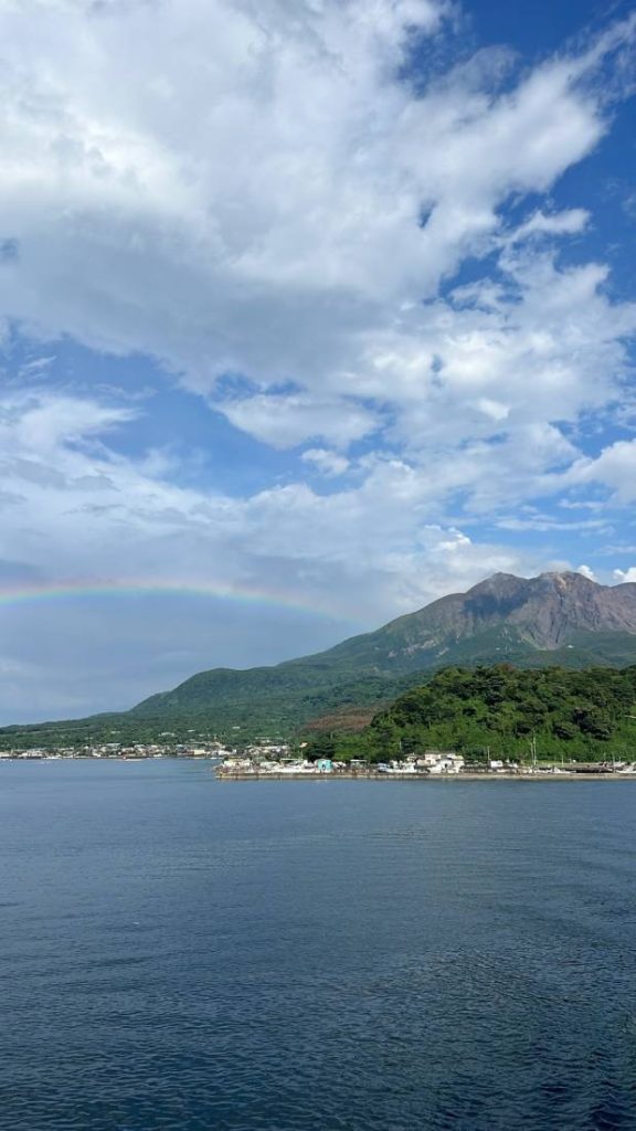 桜島 2025.10.03 先日、初めて鹿児島に来た甥っ子を連れて桜島に行きました。 桜島フェリーに乗り、名物うどんを食べていざ桜島へ🏔 大雨でしたが、いつの間にか晴れ間が見えて桜島には虹が掛かっていて とても綺麗でした!! 散歩をしていると猫ちゃんがのんびりとくつろいで寝ていました(笑) この日は桜島・指宿の唐船狭と鹿児島を満喫し、とても喜んでいた 甥っ子でした。 Written by パンメロン